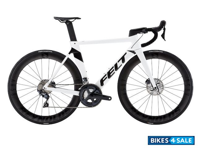 Felt Aero Road UHC Advanced + TeXtreme carbon fiber monocoque construction, AeroTaper 1.125" - 1.25" carbon fiber steerer tube, integrated crown race, crown and blades. Flat mount disc standard, 12 x 100 mm thru axle