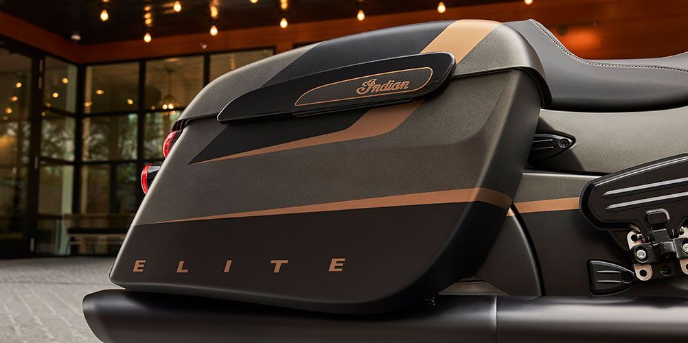 Other notable features of the Indian Chieftain Elite 2023 include Headdress Floorboards, Highway Bars, Gunfighter Style Seat, Tire Pressure Monitoring, Remote-locking Hard Saddlebags, Selectable Ride Modes, Rear Cylinder Deactivation, ABS, Keyless Ignition, 400 Watt Audio System with AM/FM, Bluetooth, USB, and Weatherband, and a 12V Charging Port.