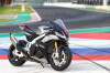 Twin Brembo front calipers and Nissin rear caliper, with ABS