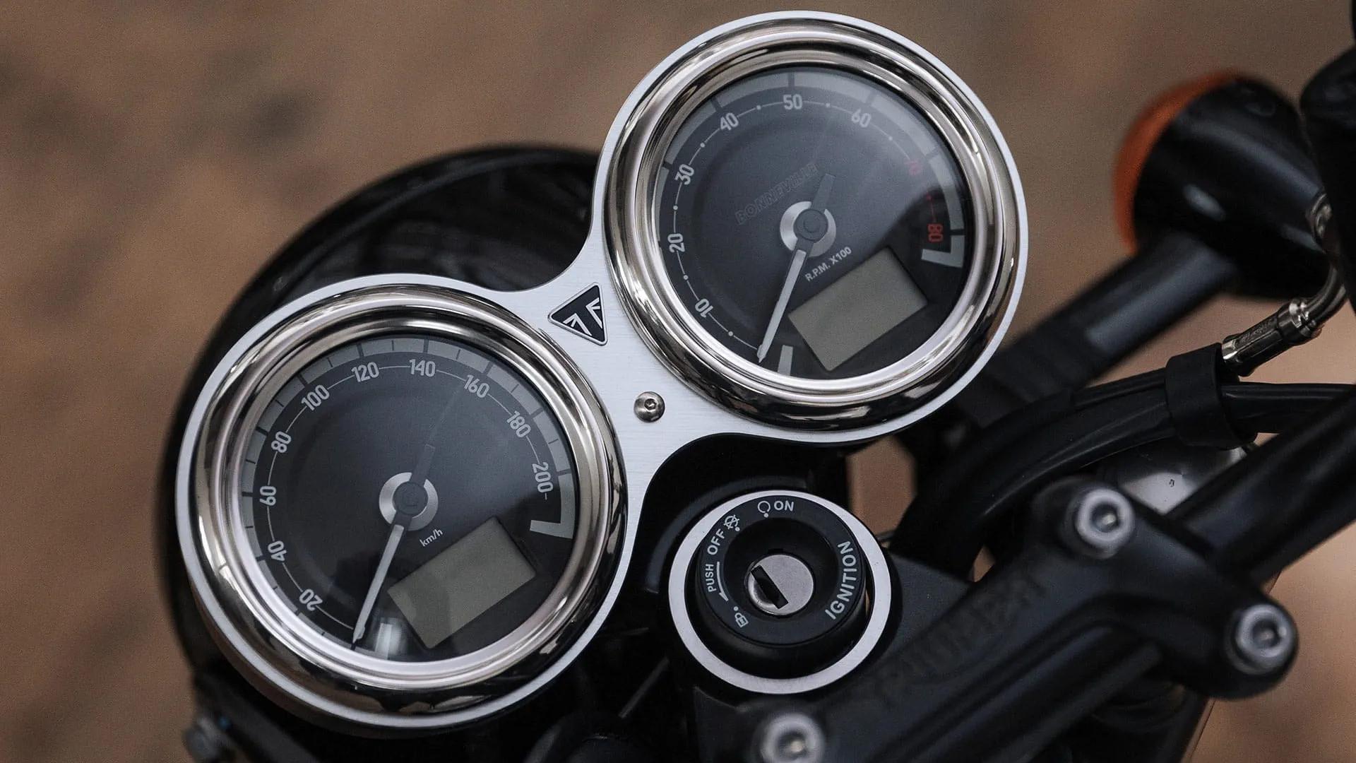 The seating capacity of the T120 Black is a twin seat, which is perfect for longer rides. It comes with two riding modes, road and rain, to provide a customized riding experience. The display features twin clocks with an analogue speedometer and tachometer, and multi-function LCD displays.