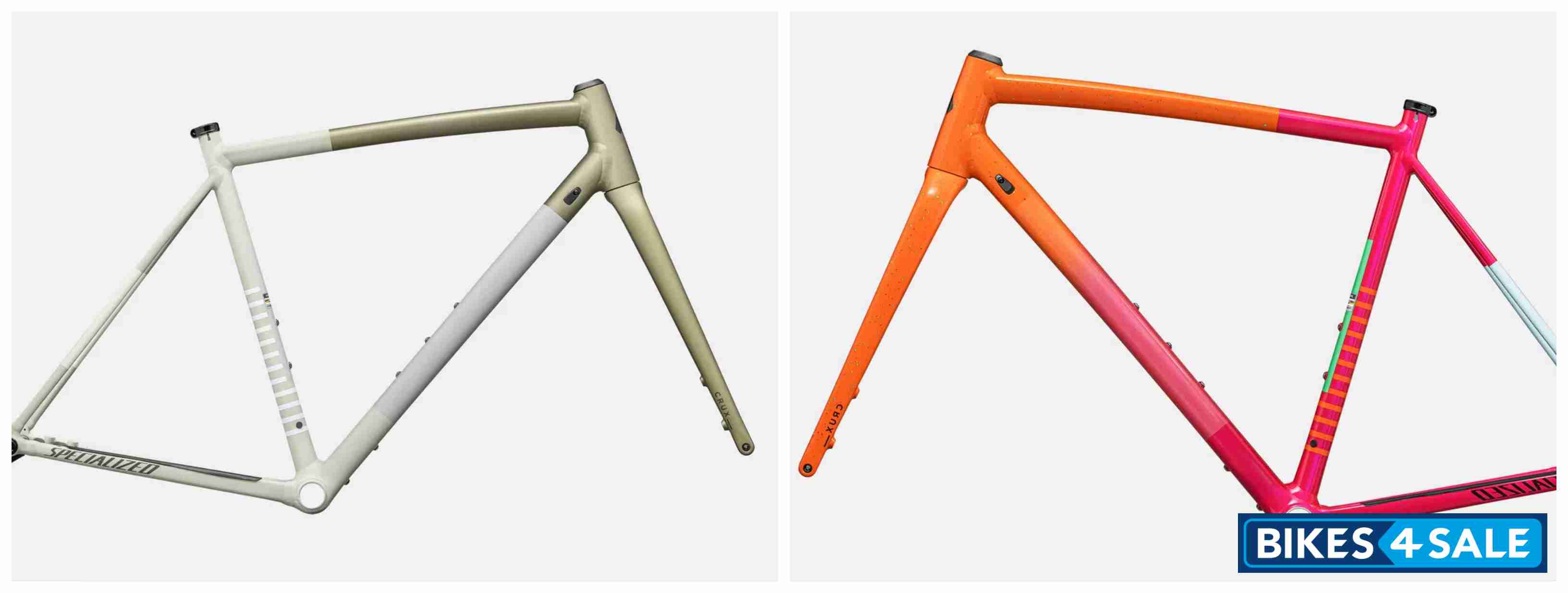 The Crux DSW frameset is available in two color options: Gloss Amber Glow and Satin Metallic Spruce, priced at $1,700. For those looking for a complete build, it comes in Gloss Birch/Clay and Satin Smoke/Oak Green for $2,600. The complete bike features 12-speed SRAM Apex components, 40T x 11-44t gearing, DT G540 wheels, and Specialized Pathfinder Pro 38mm tires.